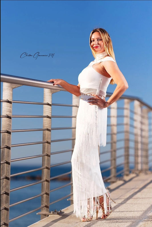 Abito bianco bandage con frangie - VERONICA & GIORGIA