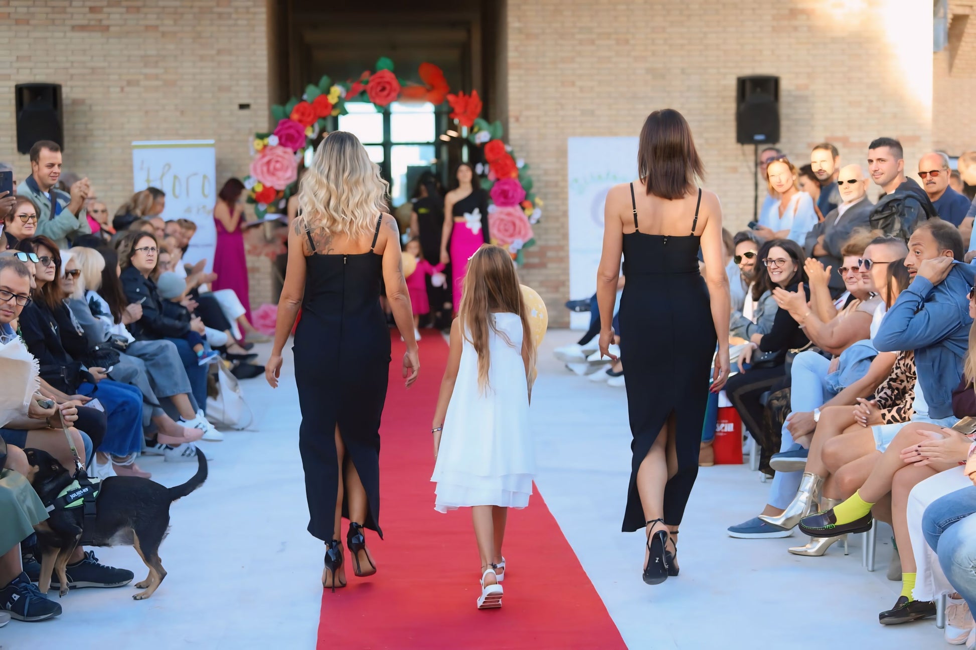 👗Abito sirena bandage nero longuette con rose bianche sul top, con spacco centrale sul retro.