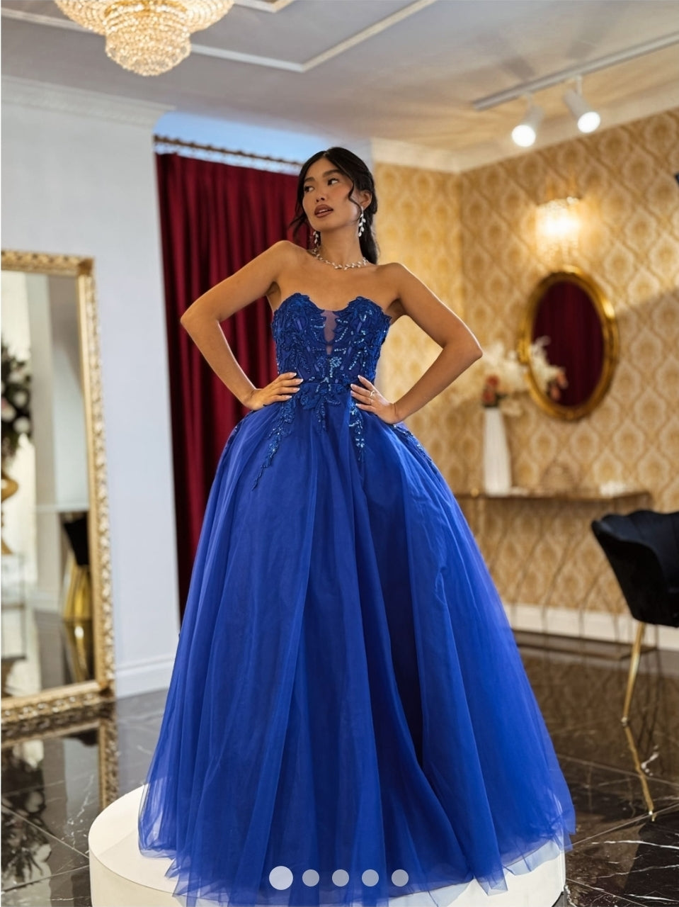 Il modello Abito ICARUS blu royal DEA FEA presenta un delicato inserto in tulle nude sul décolleté, che dona equilibrio alla scollatura e sostiene la linea del busto. La vestibilità è regolare, studiata per adattarsi con eleganza a ogni tipo di silhouette grazie al corpetto strutturato e regolabile. La gonna in tulle leggero dona volume e armonia, creando un effetto principesco e romantico.