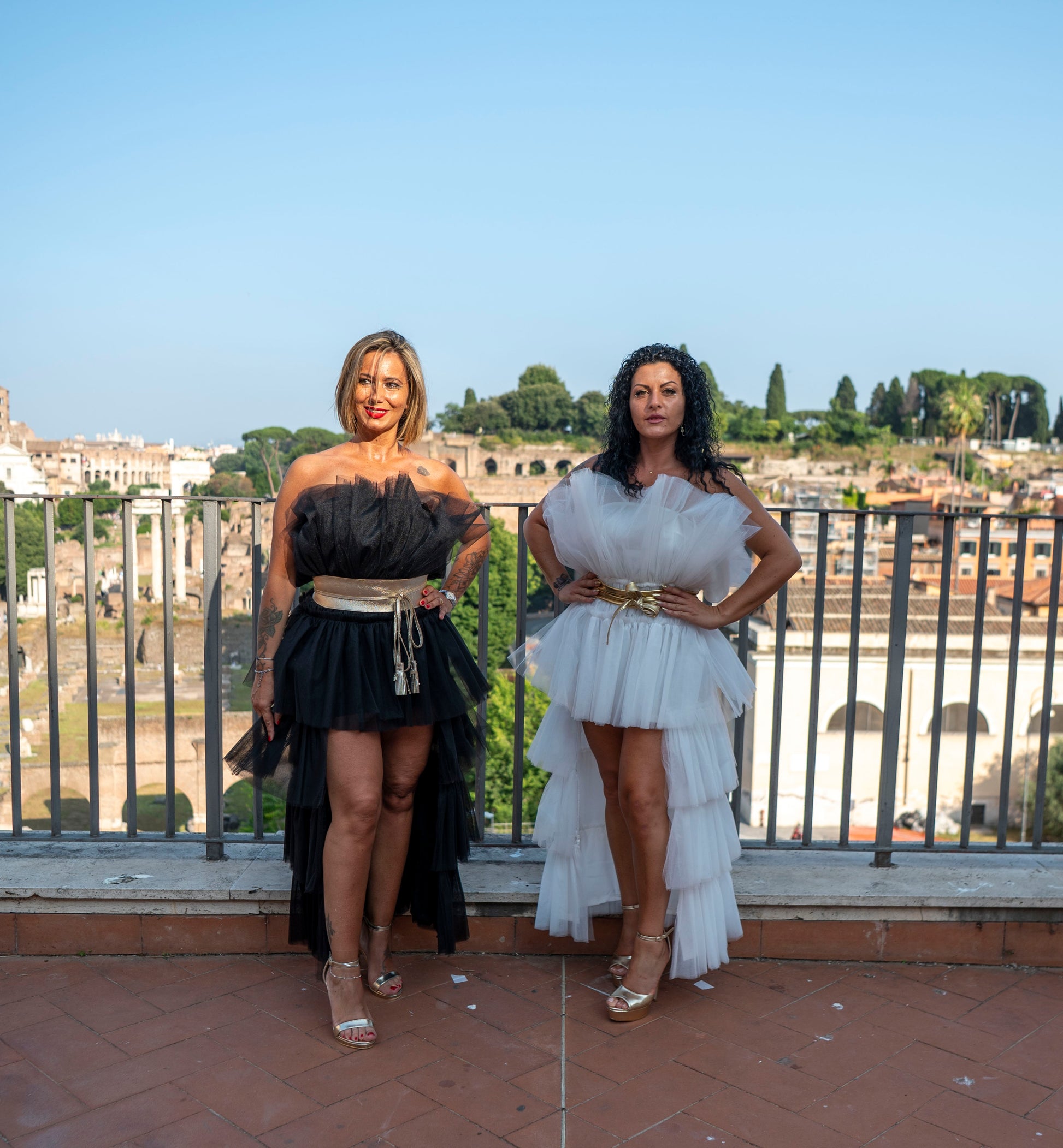 Abito con balze in tulle corto avanti e lungo dietro