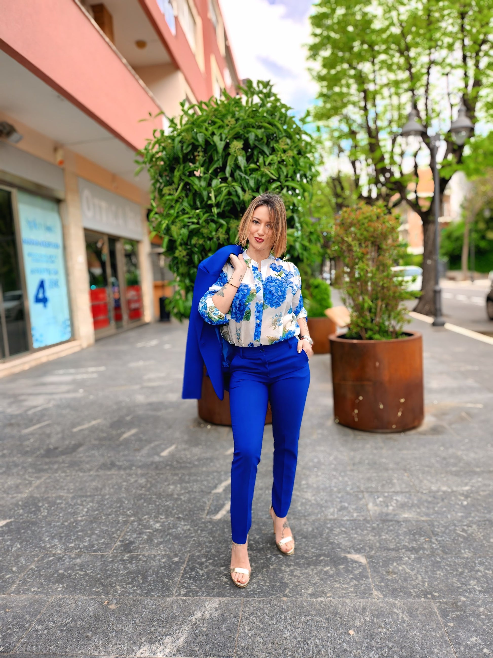 Pantaloni sigaretta, tessuto tecnico senza bisogno di stirare, giacca monopetto media lunghezza.