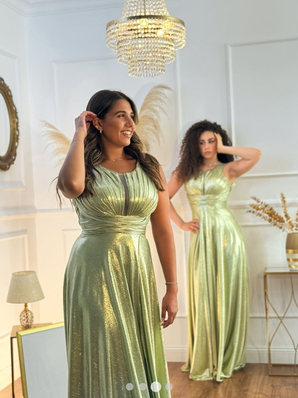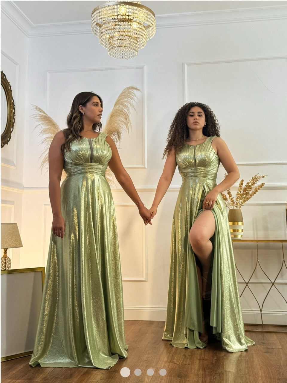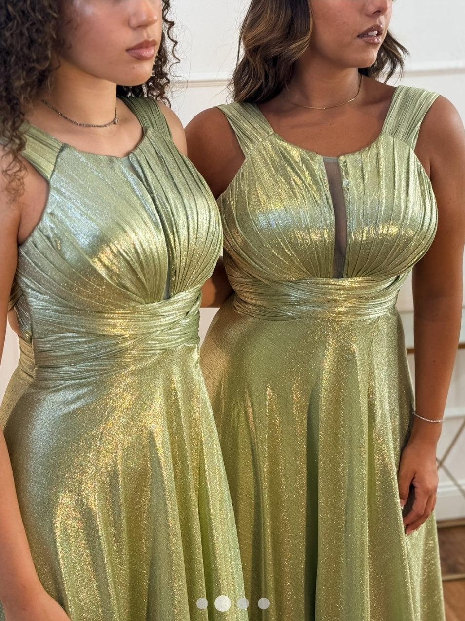 Modello: Abito lungo stile impero. Il corpetto presenta un tessuto drappeggiato e le coppe a vela, con spalline larghe. La fascia sotto il seno abbraccia delicatamente il décolleté fin dietro la schiena, offrendo sostegno e dando struttura al corpetto. Il gonnellone scende fluido, avvolgendo le gambe con un movimento elegante, mentre lo spacco portafoglio aggiunge un tocco di sensualità