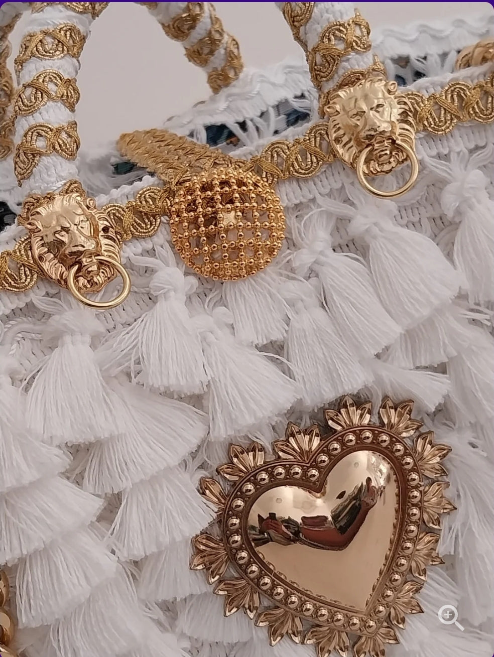 👜 Coffa Liberty white in passamaneria e cuore intarsiato a mano da artigiani di Sorrento con con leoni siciliani
