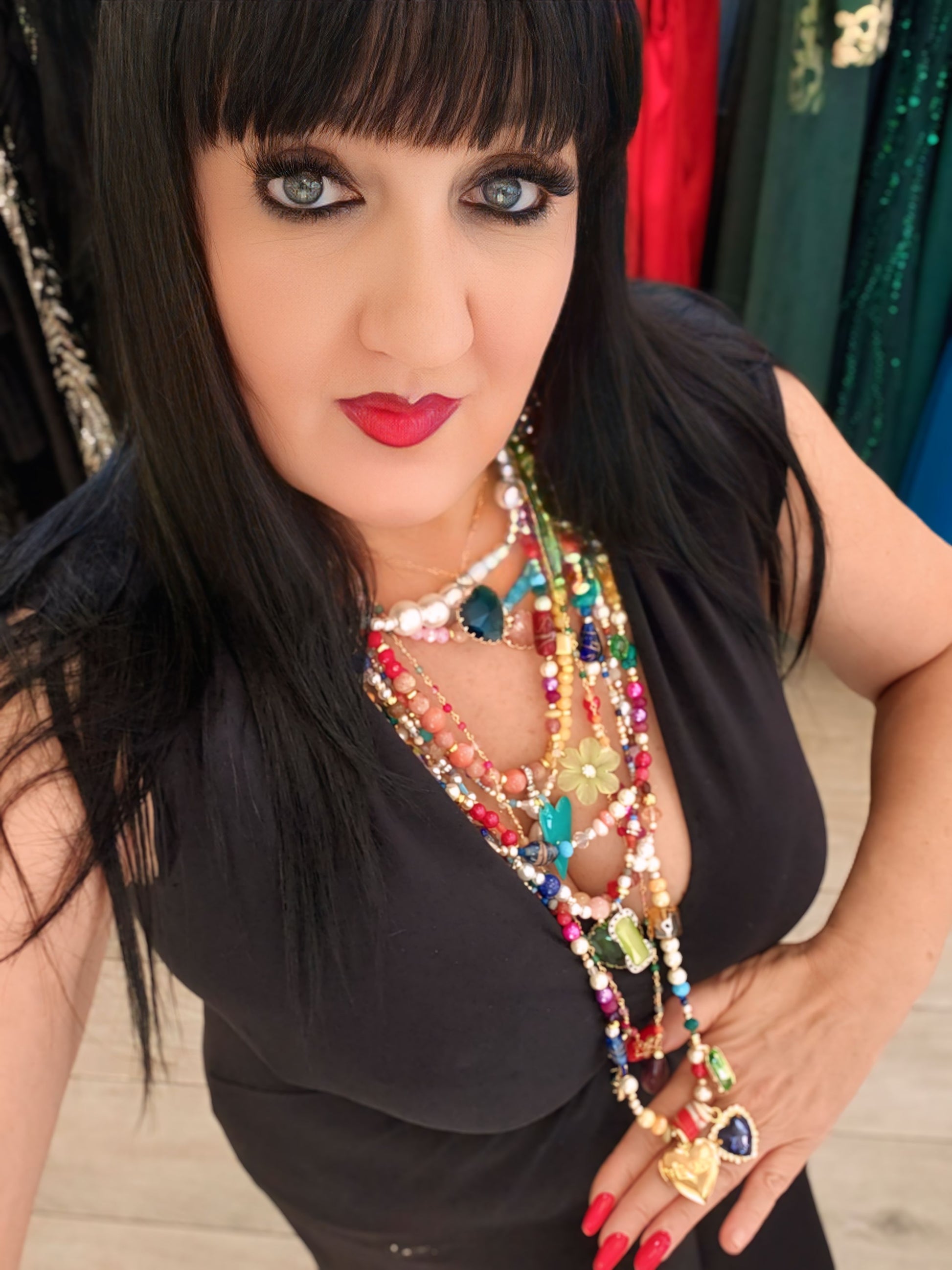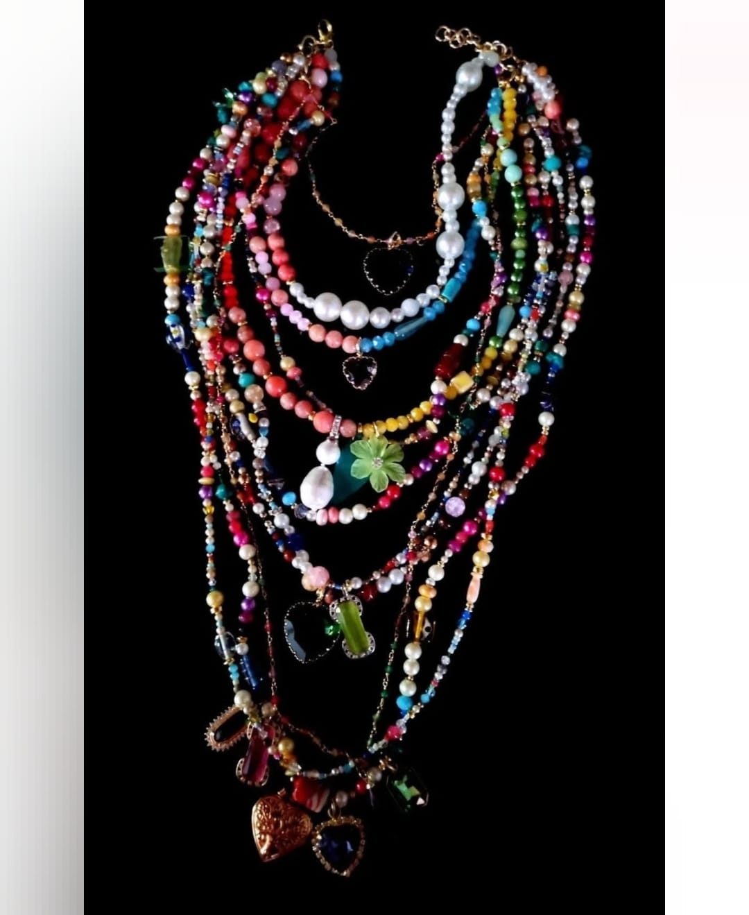 📿 Collana artigianale lunga, multistrato colorati di perle e ciondoli vari