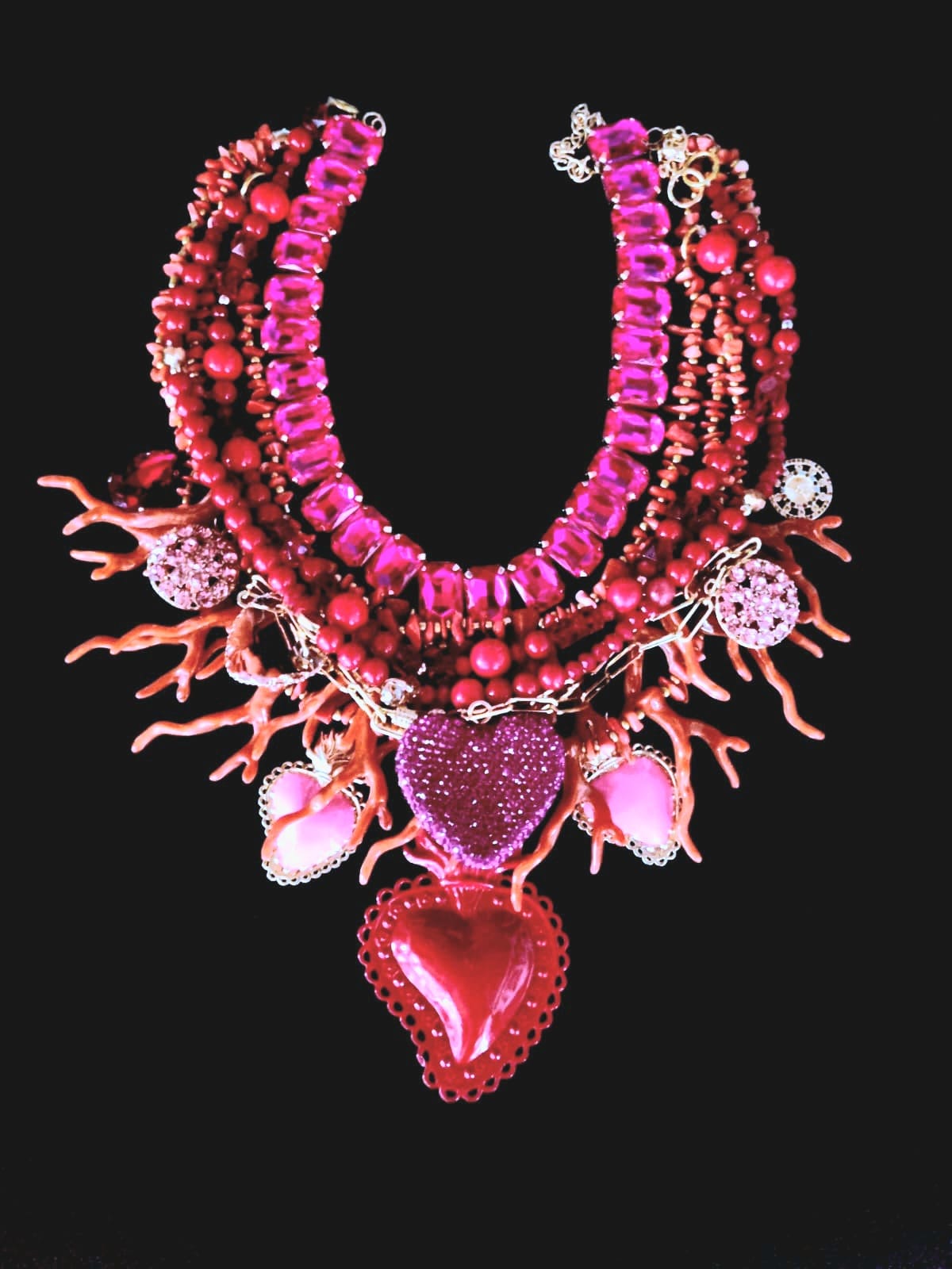 📿 Collana girocollo nei toni del rosso e del fucsia. Multigiri di perle colorate, pietre,coralli e cuoricini, artigianato made in Italy🇮🇹