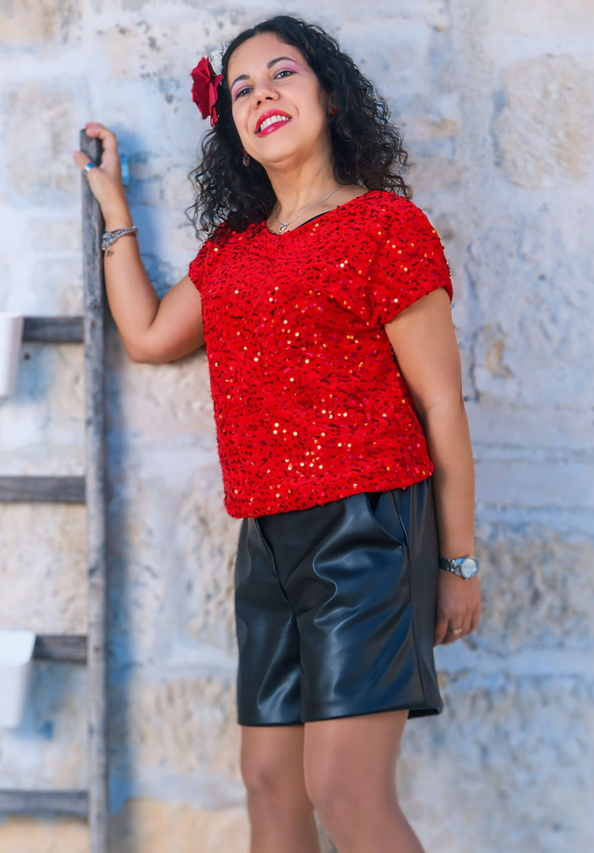 🩳 Short in ecopelle nera con cinta
