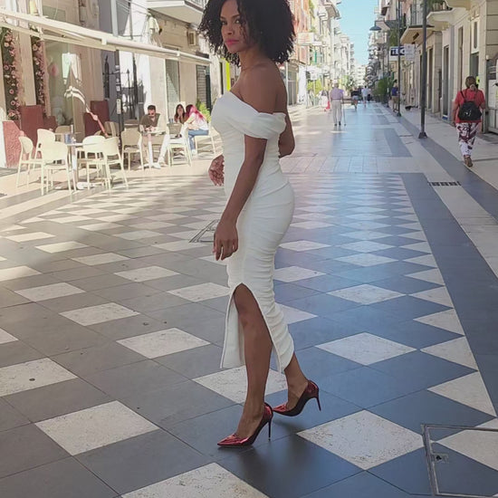 Tubino bianco drappeggiato Joanne DEA FEA elegante abito donna