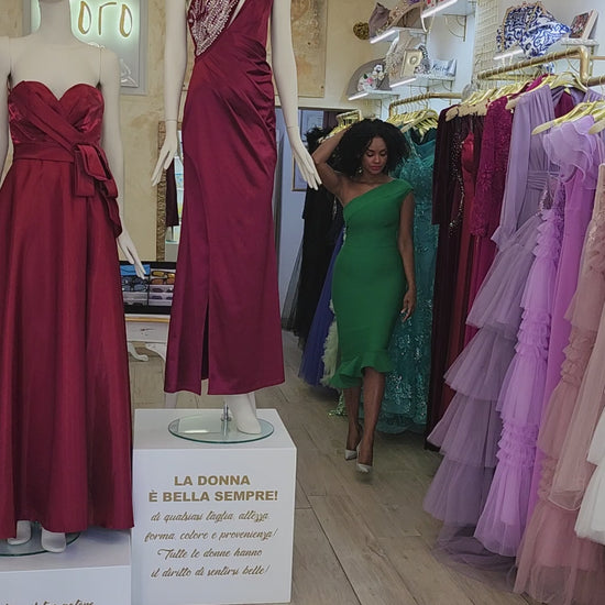Perfetto per la donna moderna che desidera distinguersi con classe, il tubino verde CLIO elegante abito donna firmato DEA FEA è un capo intramontabile, simbolo di qualità, gusto e passione per la moda italiana.